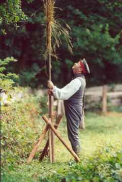 errichtet; diese bestehen aus einer 4-5m hohen Stange, die oben mit einem Strohwisch zum Anvisieren umwickelt werden. Unten werden diese auf den Vermarkungspflock eingelassen und mit einem Dreibein aus 4 Fuß langen Pflöcken gestützt. Ein Schaft aus drei parallelen Pflöcken verhindert das Verrutschen der Stange, die dennoch herausgenommen werden kann.