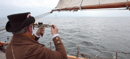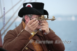 Bei ruhiger See können die beiden Winkel binnen weniger Minuten gemessen werden. Danach begibt sich unser Geometer unter Deck und bestimmt den Schiffsort
