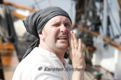 Ole Olsen brüllt dem mitunder schwerhörigen Navigator Knufnike den Kurs und die Zeit zu.