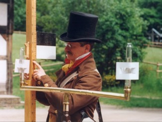 Vermessung: Mit der Kanalwaage werden die Höhendifferenzen in Dezimalzoll (1 Fuß geteilt durch 10) zwischen den Stationspunkten direkt