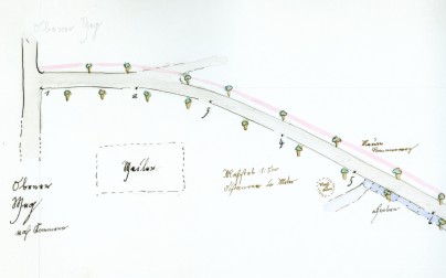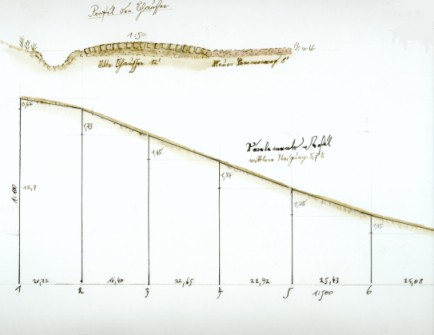 Nivellementsprofil und Verlauf der Chaussee zwischen der Baugruppe Eifel und dem Oberweg, Freilichtmuseum Kommern.