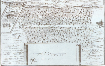 Pars II., Cap IV, Tafel XVIII, Figur 4: Die sechste Aufgabe: Eine Allee durch einen Wald nach gewissen Puncte