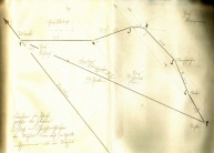 Nun begibt man sich nach Hause und fertigt die Reinzeichnung nach der bekannten Nordrichtung, den Winkeln und den Distancen auf ein sauberes Papier.