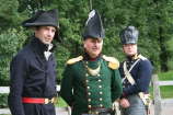 der Kartätschen nach Scharnhorst Handbuch der Artillerie. Um elf Uhr Andacht unseres Dieners Josef-Berta, eines entlaufenen Zisterziensers, in der Halle von Rhinschenschmidthausen, da der Garten des Herrenhauses wegen Regens nicht hierfür herhalten konnte. Anschließend zwey Rekruten der Landwehr vereidigt. Der fehlende Branntewein führt zu einem kleinen Aufruhr der Landwehr, wofür Capitaine Blesson den Unteroffizier Vahnenbroeck ernsthaft tadeln mußte. Capitaine Meyer trug über die Entwicklung des aufgelösten Gefechts vor, Major Berker über das Reglement