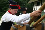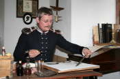 Des Nachmittags um drei exerzierten die Herren am Geschütz unter Anleitung des Caporal Celvin. Jeder exerzierte in einer Positionen 1 bis 4 nach dem franz. Reglement von 1786. Die Herren erhielten zum Abschluß die St. Barbara-Taufe.