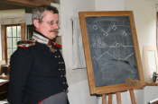 Nachmittag um vier von Capitaine Blesson eröffnet wurde. Es kam zur Verlesung des königliche Circulaire zur Einrichtung der Kriegsschule 1810. Zuvor wurde der franz. Commissaire mit den Begriffen des permanenten Festungsbaus an Hand es Modells und des förmlichen Angriffs nach Bousmard vertraut gemacht. Wegen hereinströmender Neugierigen gab Capitaine Blesson Ordre, daß eine Wache an der Türe Posto fassen sollte. In der Einführung in die Feldbefestigung behandelte er offene und geschlossene Schanzen, Profile, Aufstellung der Artillerie, Kapazitätsberechnung. Des Abends Essen im Gasthof zur Post, wohin mit dem Fuhrwerk und Fuhrwerk gefahren wurde. Ländlich-deftiges Essen, gute Stimmung, anschließend die Relaisstation besucht.