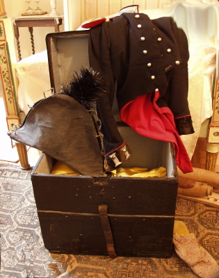 in der Schlafkammer mit Rock, Federhut and robe de chambre