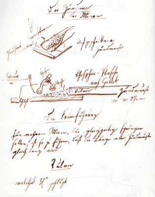 der Mine mittels der aufgeschnittenen Zündwurst, welche auf ein Brett genagelt wird.