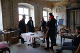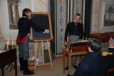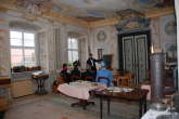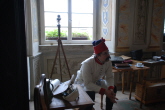 Freitag vormittag: Capitaine Blesson und seine Ordonnanz richten den Schönbornsaal für den Unterricht her. Es werden ein Buffet, Tafel, Sekretär, Karten- und Plantisch, Bibliothek, Rüstkammer und Festungs- sowie Artilleriemodelle und die Instrumente aufgebaut.