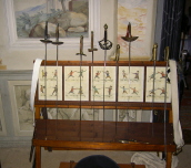Hinrich Stumphusen erläutert die Geschichte des Fechtens vom späten Mittelalter bis in die gegenwärtige Zeit an Hand von Übungswaffen und der Blankwaffen der Rüstkammer.